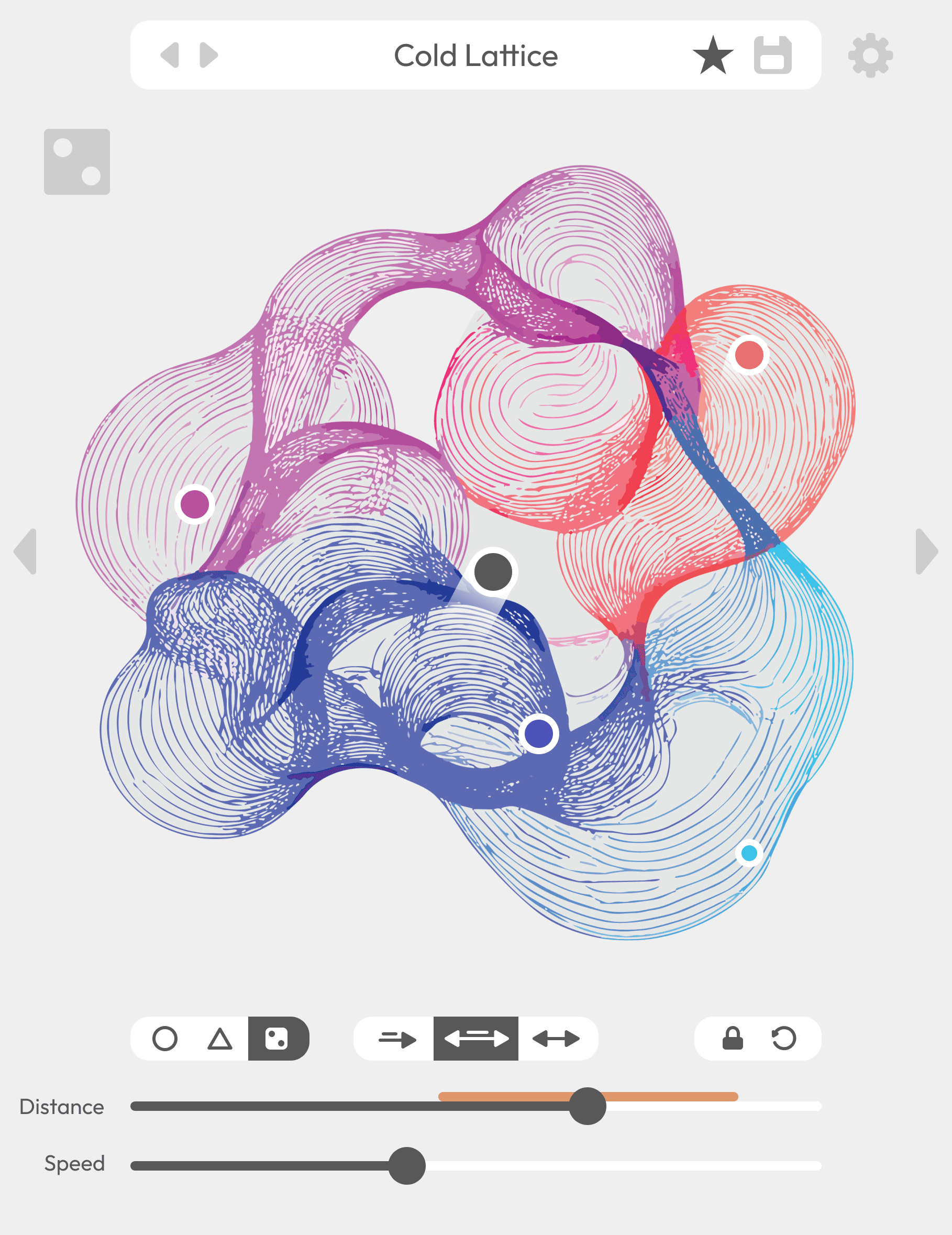 The interface is structured to encourage exploration without hiding how things work. Randomisation buttons are placed across the interface as deliberate creative tools rather than shortcuts, allowing users to quickly introduce variation and discover new states without losing orientation or control.